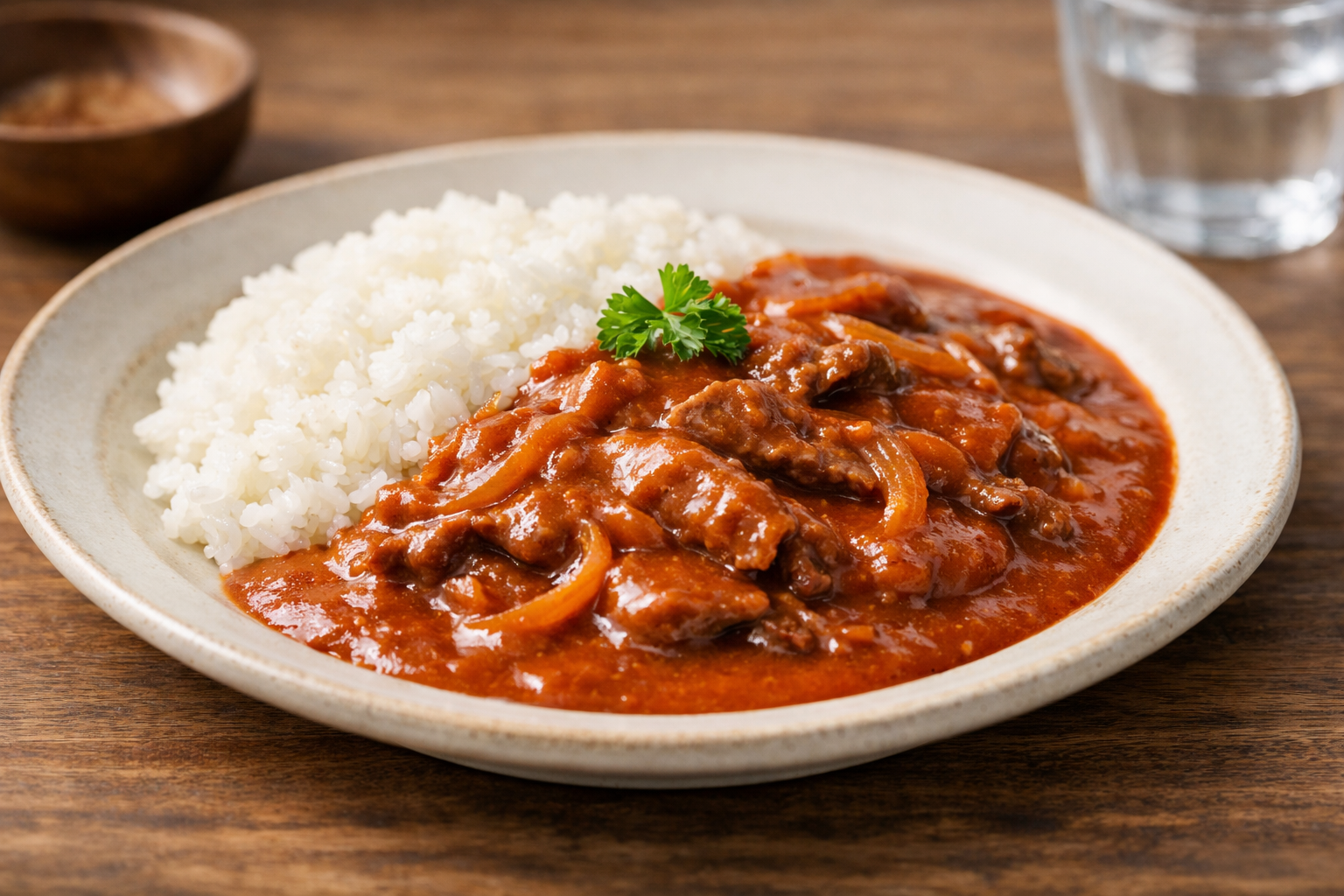 ①メニュー(完熟生トマトたっぷりハヤシ)